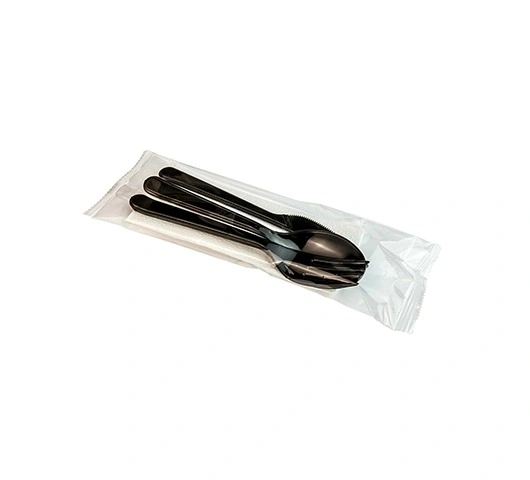 Набор №5 (ложка+вилка+нож+зубочистка+салфетка) черный Премиум ПС Н51-006